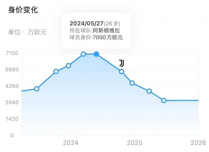 如今仅1年过去,道格拉斯-路易斯身价直降4000万欧,现仅剩3000万欧。